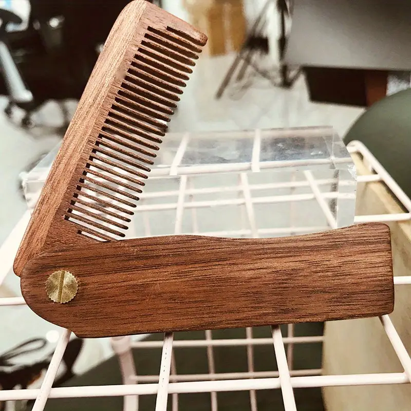 Компактен и елегантен гребен от естествена дървесина с удобен сгъваем дизайн. Идеален за пътуване или ежедневна употреба – побира се лесно в джоб, чантичка или козметичен несесер. Гладката повърхност и фино изработените зъбци предпазват косата от наелектризиране и накъсване. Възможност за персонализация с гравирано лого.