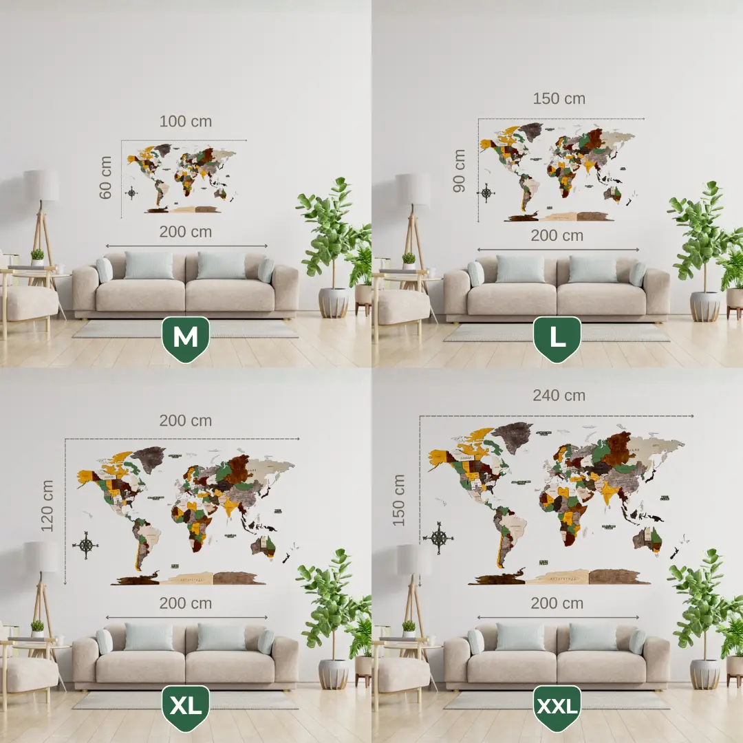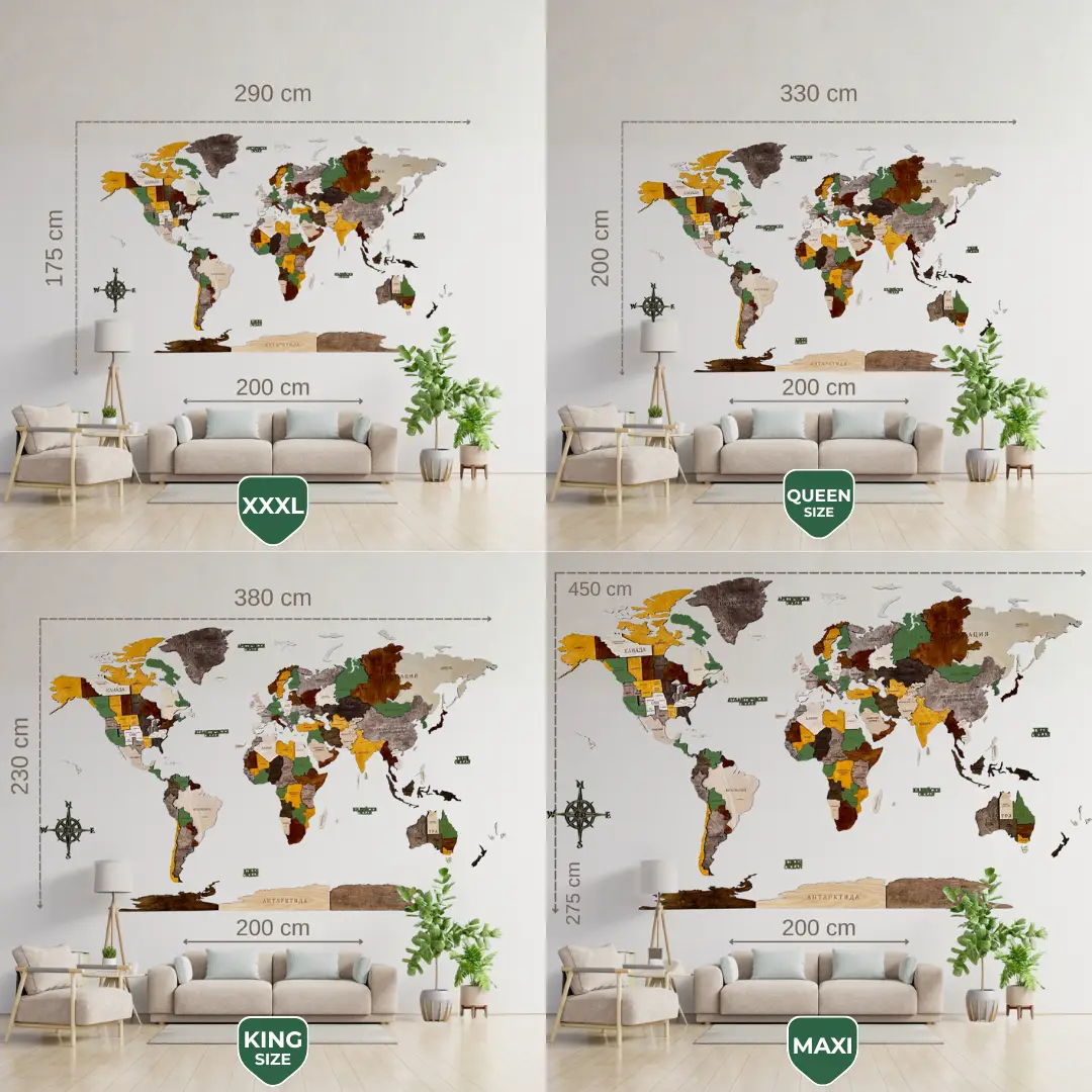 Предлагаме най-голямото разнообразие от размери дървени 3D карти в света: 8 различни размера, като сме готови да поемем и нови предизвикателства.