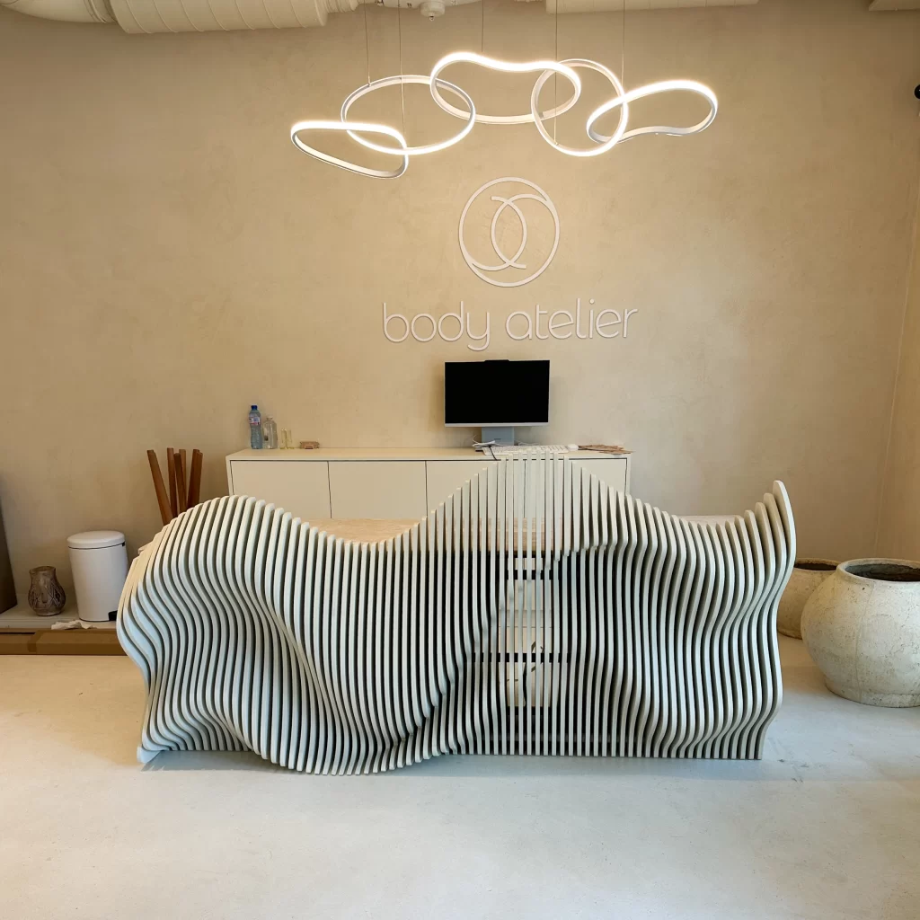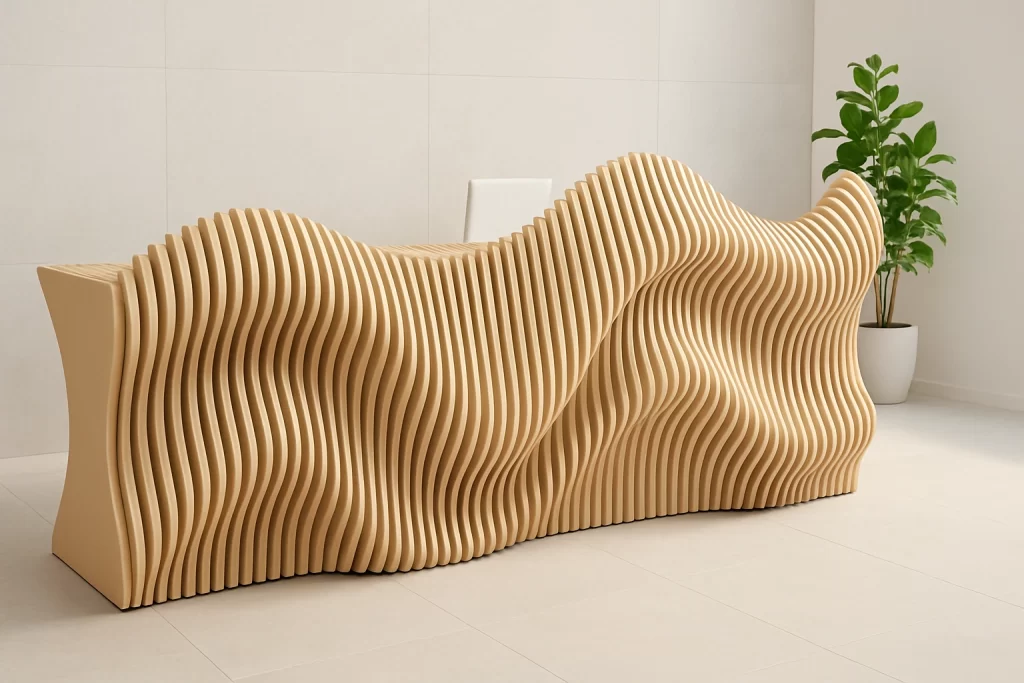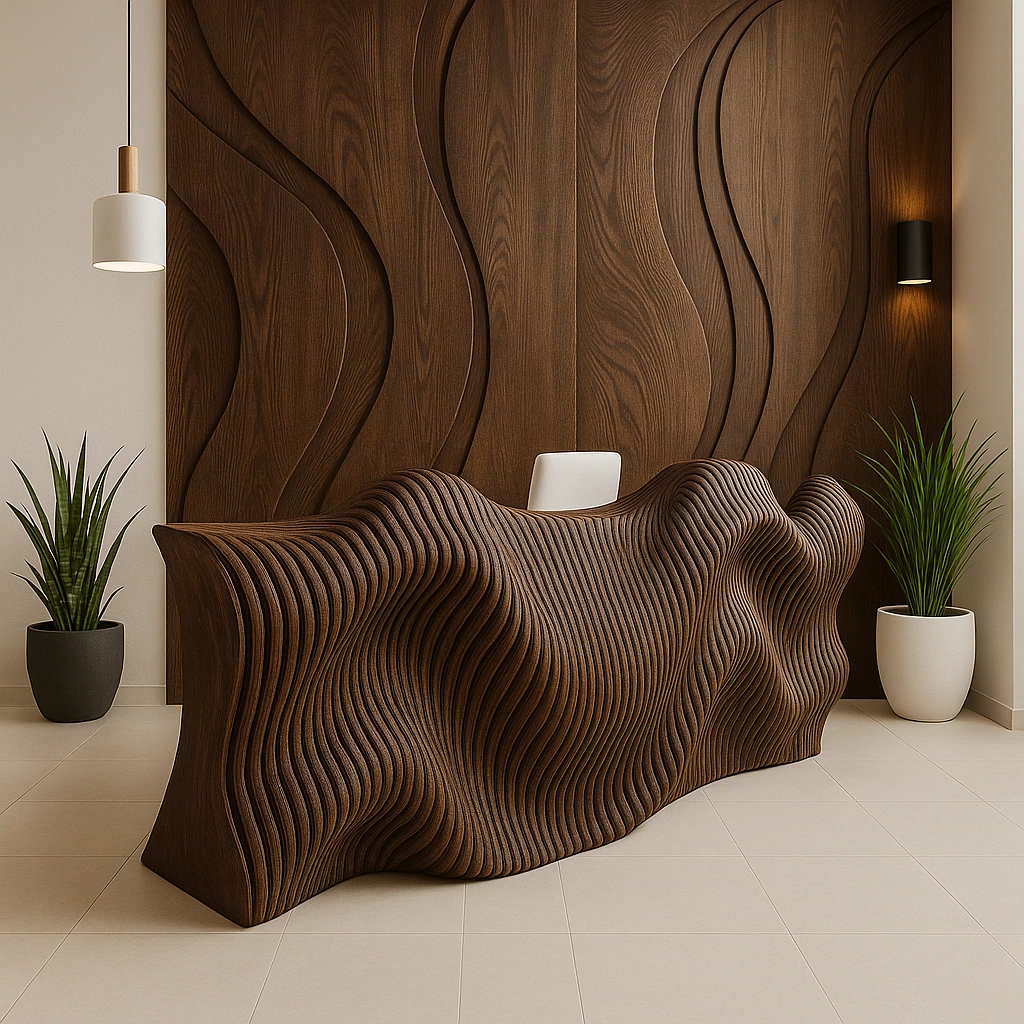Нашите параметрични мебели са създадени, за да вдъхновяват и да придават уникален характер на всяко пространство. С впечатляващите си вълнообразни линии и модерна естетика, те се превръщат в център на внимание, който съчетава функционалност и изкуство. Независимо дали са част от офис, хотел, салон или дом, тези мебели носят усещане за стил и индивидуалност.